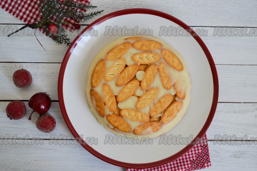 Оставшееся печенье выложить сверху, немного вдавливая.