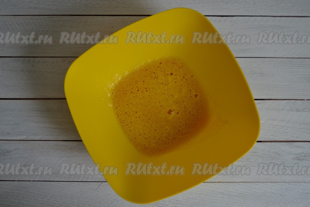 Куриные яйца вбить в глубокую миску, всыпать щепотку соли и хорошо взбить.