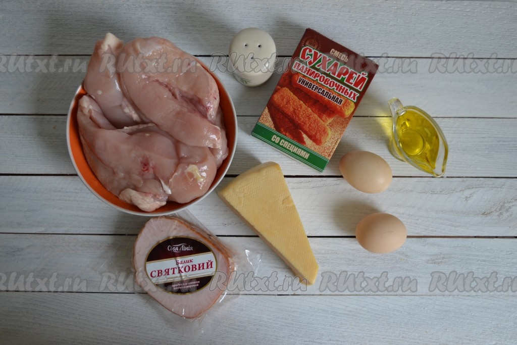 Подготовить необходимые ингредиенты для приготовления кордон блю из куриного филе.