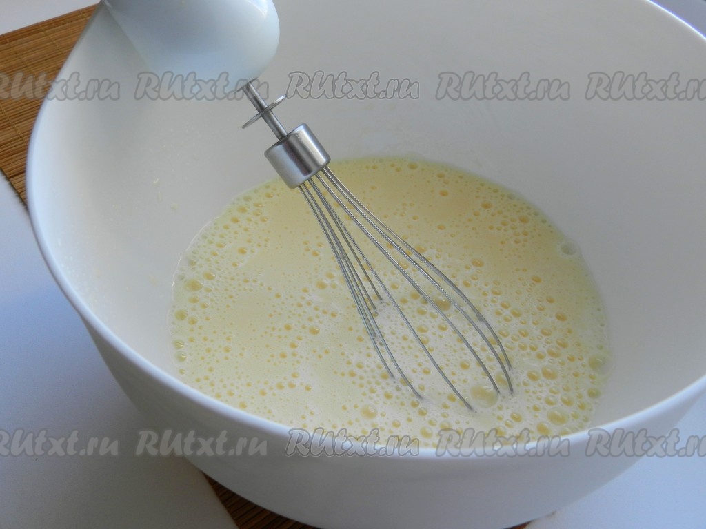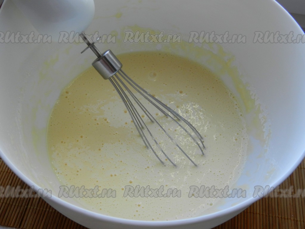 Добавить к яичной массе растительное масло и снова взбить.