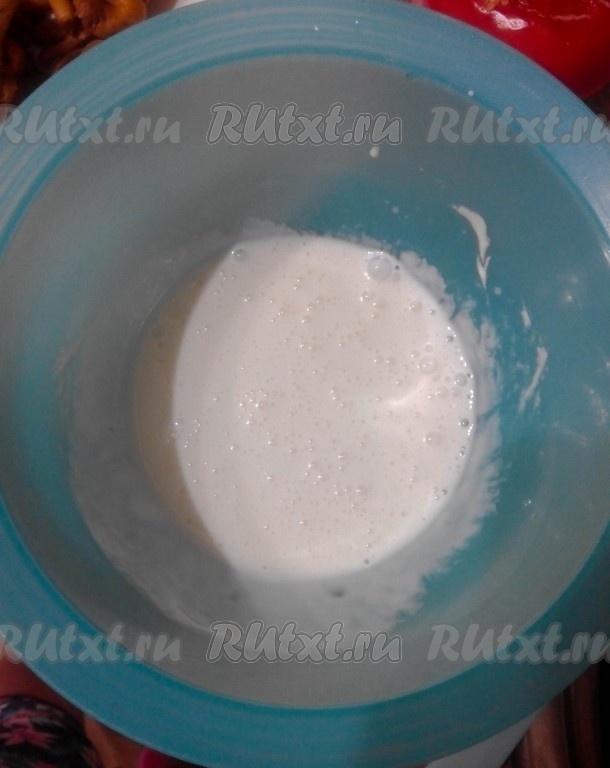 Яйцо взбить со сметаной, добавить немного соли и соду, перемешать.