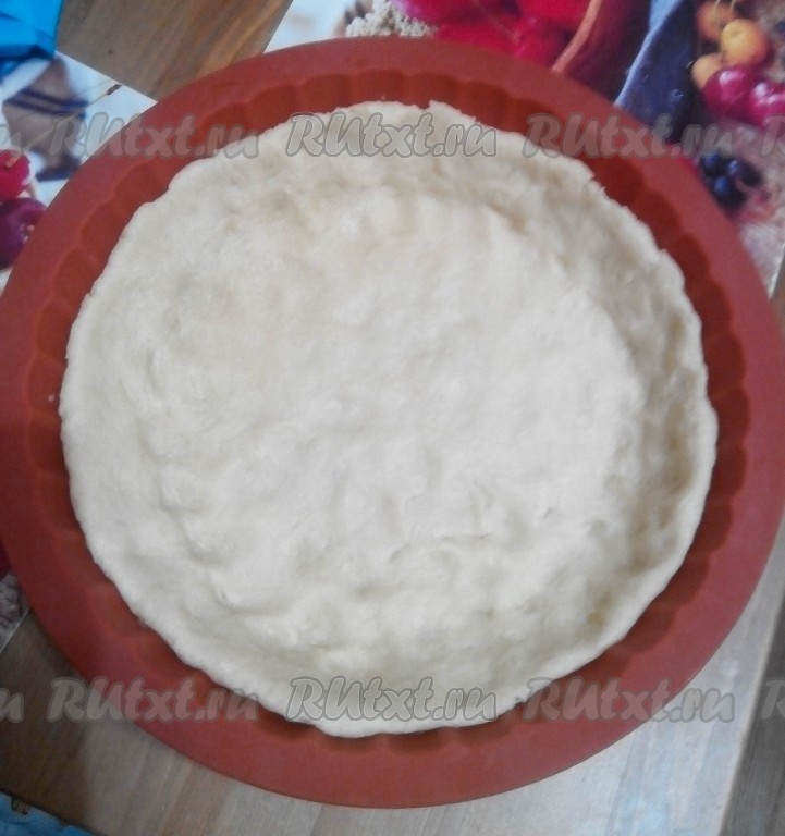 Форму для запекания смазать маслом, выложить тесто, распределить его по всей форме.