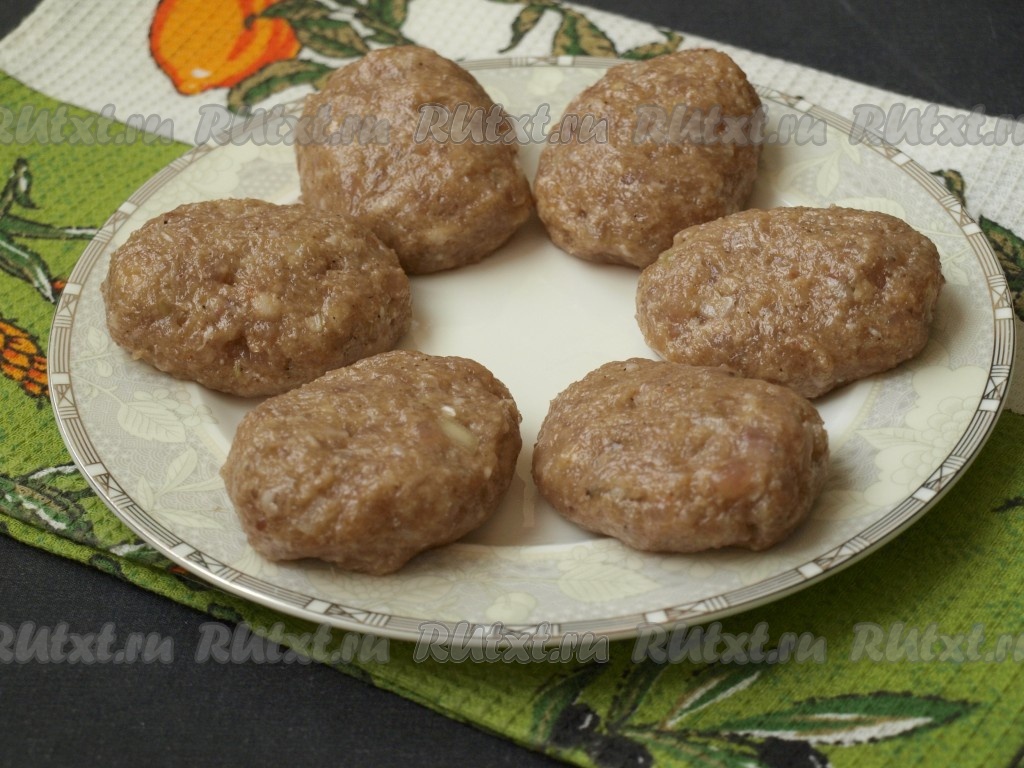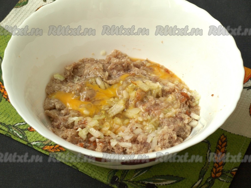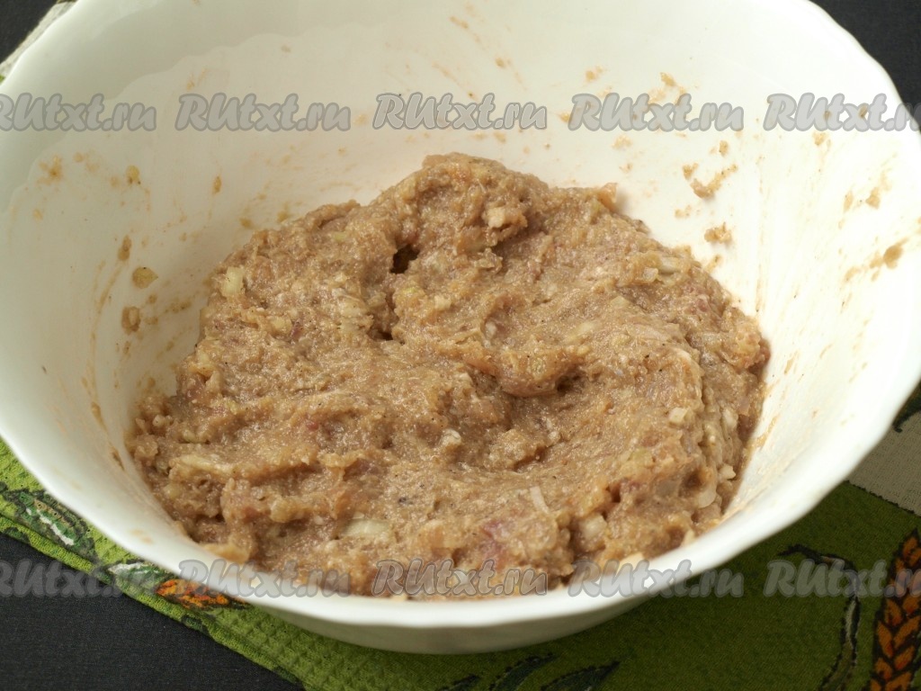 Хорошо перемешать фарш, несколько раз постучать об миску, чтобы удалить лишний воздух.