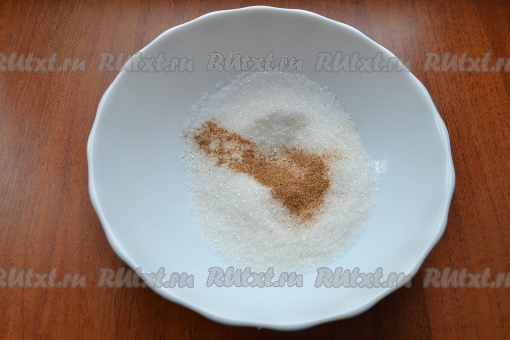 Оставшиеся 50 грамм сахара смешать с корицей.