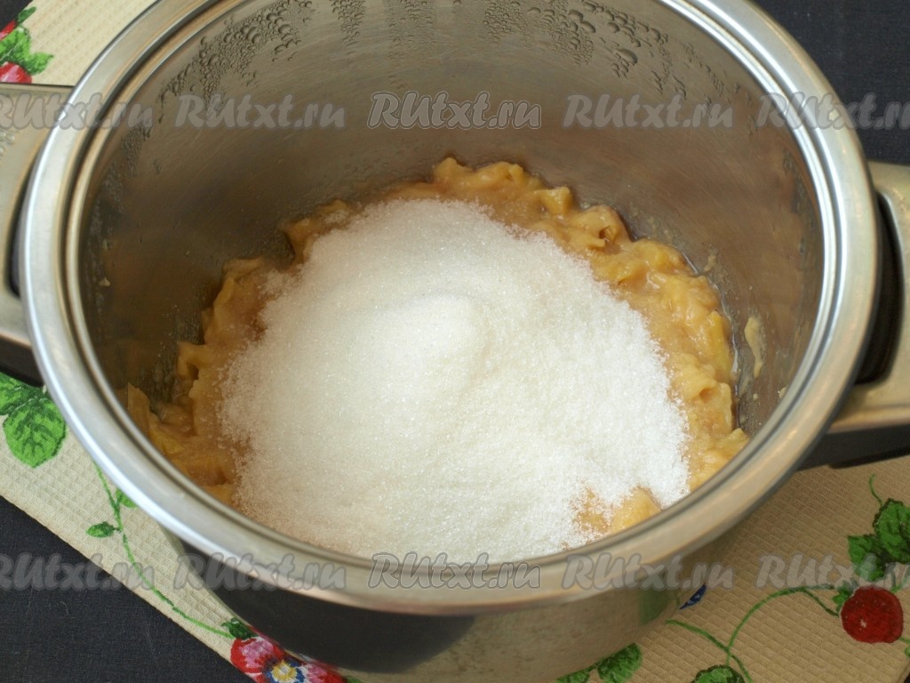 Добавить к айвовому пюре сахар и снова поставить на огонь.