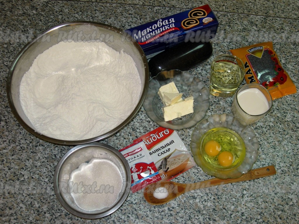 Предлагаю рецепт ароматного, вкусного рулета из дрожжевого теста с готовой маковой начинкой. Из указанного количества ингредиентов получается 2 рулета, если Вам достаточно одного, то уменьшите ингредиенты вдвое. Отличная выпечка, попробуйте!