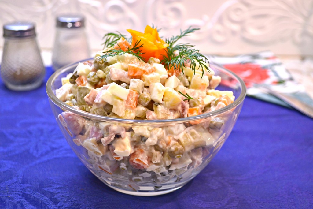 Салат "Оливье" любят, наверное, все и он является украшением любого праздничного стола. Вариантов приготовления этого блюда очень много, я предлагаю вам попробовать "Оливье" с копченой курицей. Салат похож на классический вариант, но с добавлением легкого аромата и привкуса копченостей. Нам очень понравился салат, приготовленный по этому рецепту, попробуйте и вы!