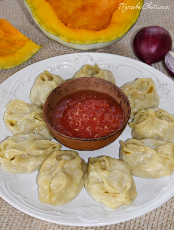 Манты с тыквой и фаршем - это очень сочное, вкусное и сытное блюдо! Подавать их надо горячими, смазав сливочным маслом и посыпав свежесмолотым перцем. А если Вы налепите таких мантов больше, чем сможете съесть за раз, то смело замораживайте их впрок, они прекрасно переносят заморозку и не теряют своих вкусовых качеств. Ну что, приступим?