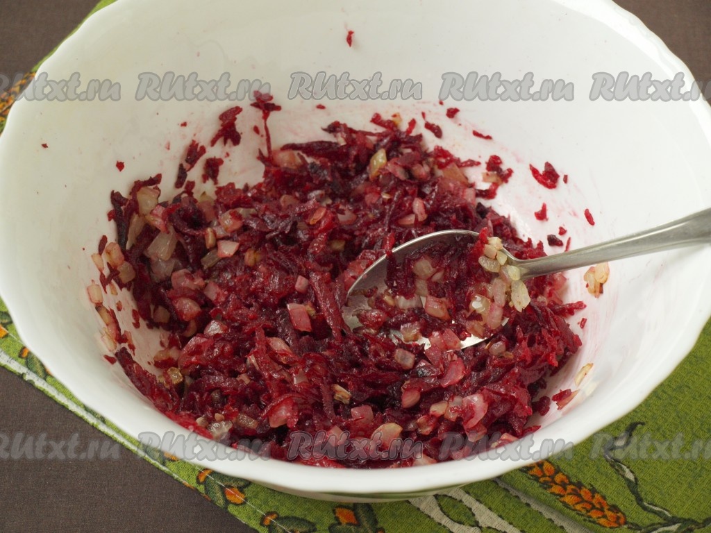 Варёную свеклу натереть на крупной тёрке и сложить в миску.