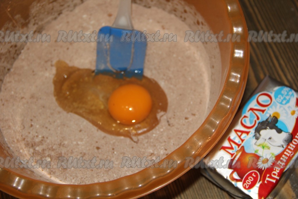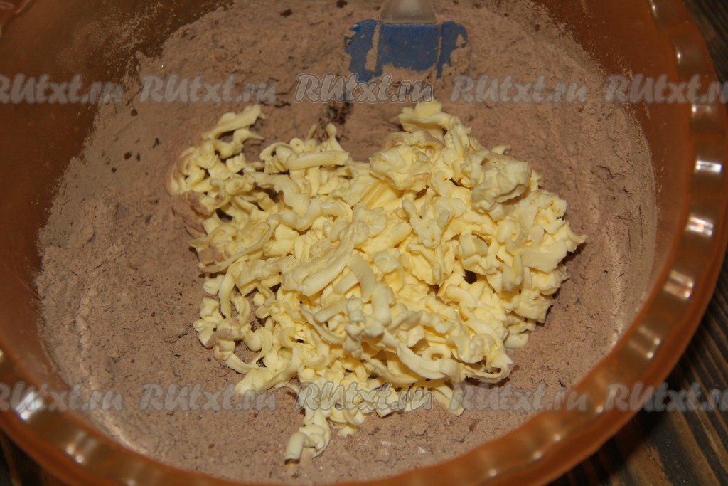 В получившуюся смесь добавить холодное сливочное масло, натёртое на тёрке или порубленное ножом.