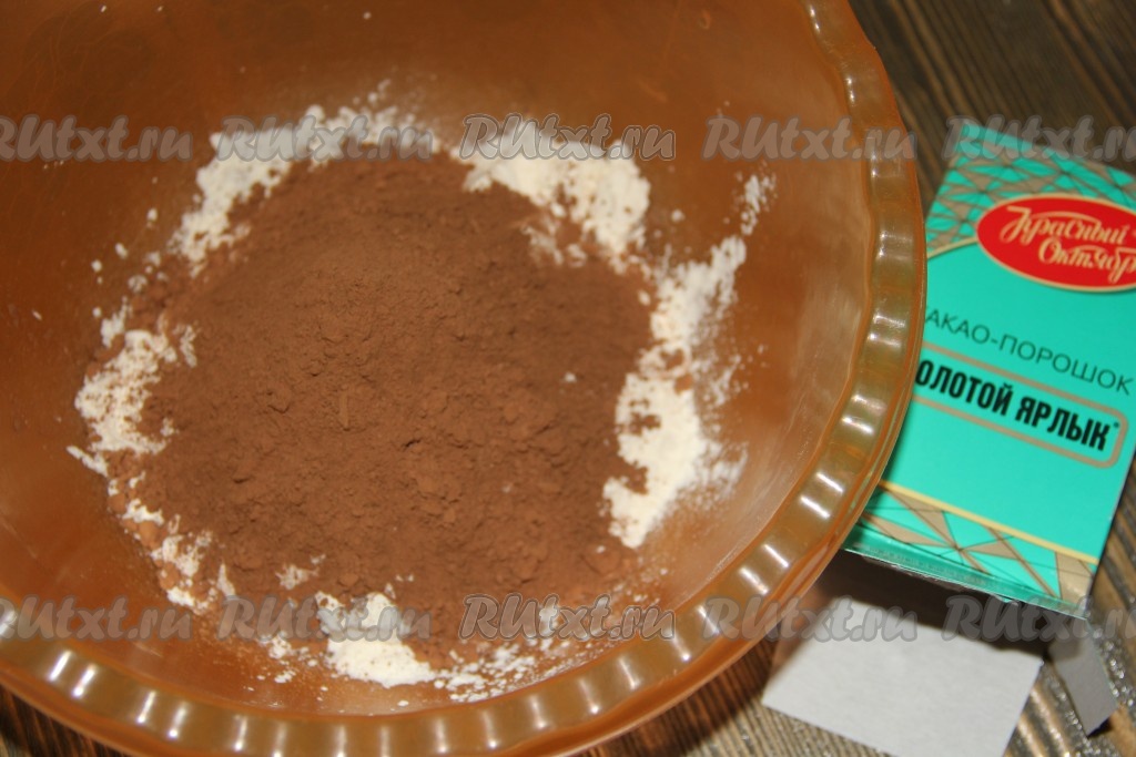 Для приготовления песочной основы соединить муку и какао.