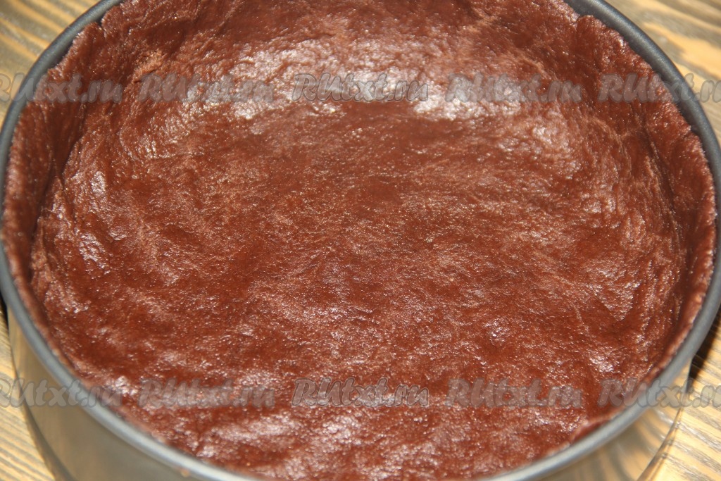 Тесто выложить в форму (у меня разъёмная форма диаметром 22 см) и сформировать высокий бортик.