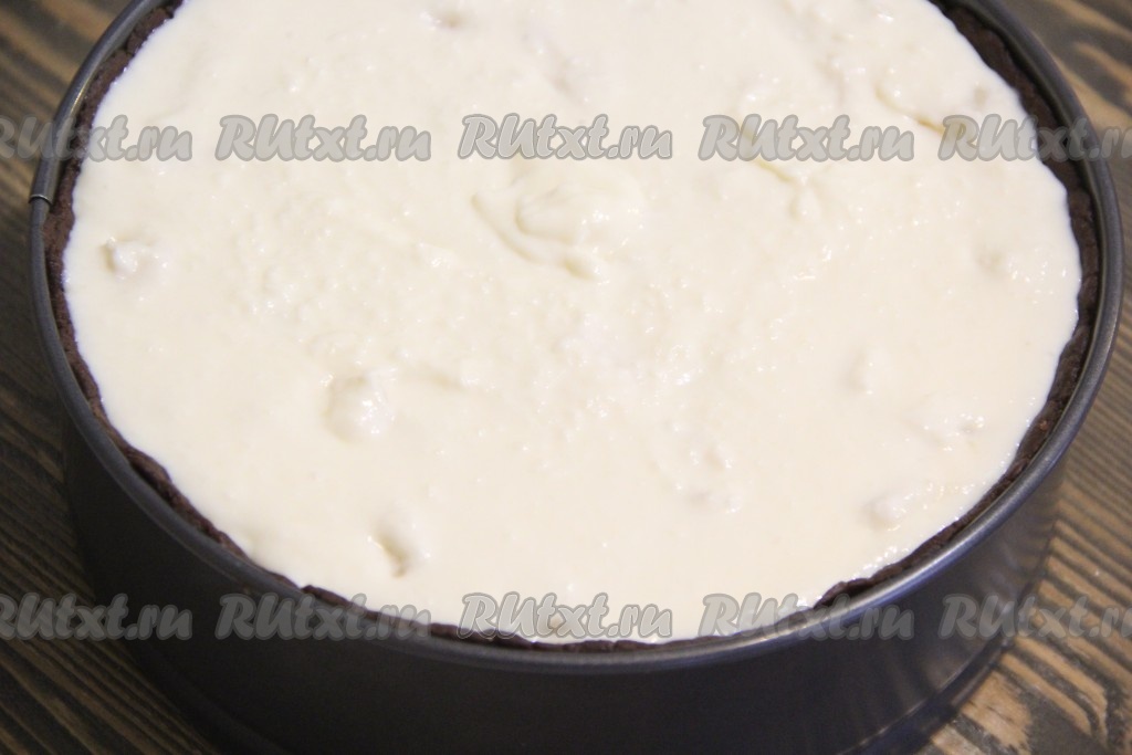 Поставить чизкейк из творога в разогретую духовку и выпекать, примерно, 50 минут при температуре 180 градусов.