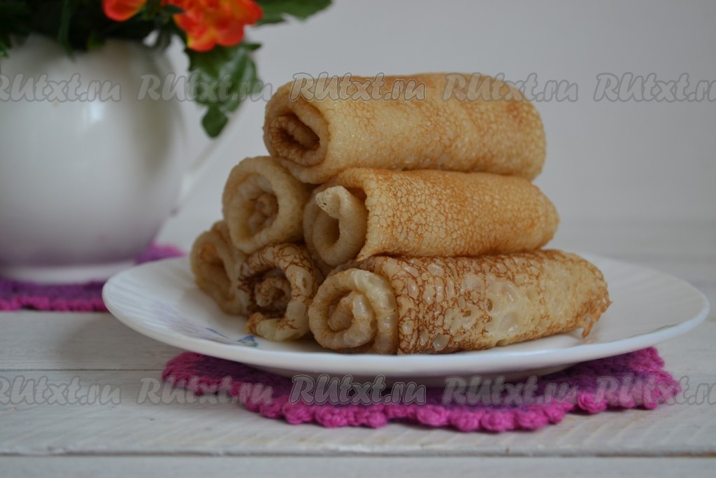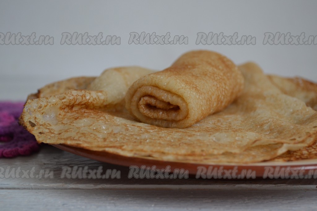 Блины можно приготовить на воде, не используя ни молока, ни яиц. Такие блинчики своим вкусом и внешним видом не будут уступать иным блинам. Я этот рецепт испробовала множество раз. Блины на воде получаются тонкими, пористыми и нежными на вкус, и, что немаловажно, легко переворачиваются на сковороде, не рвутся.