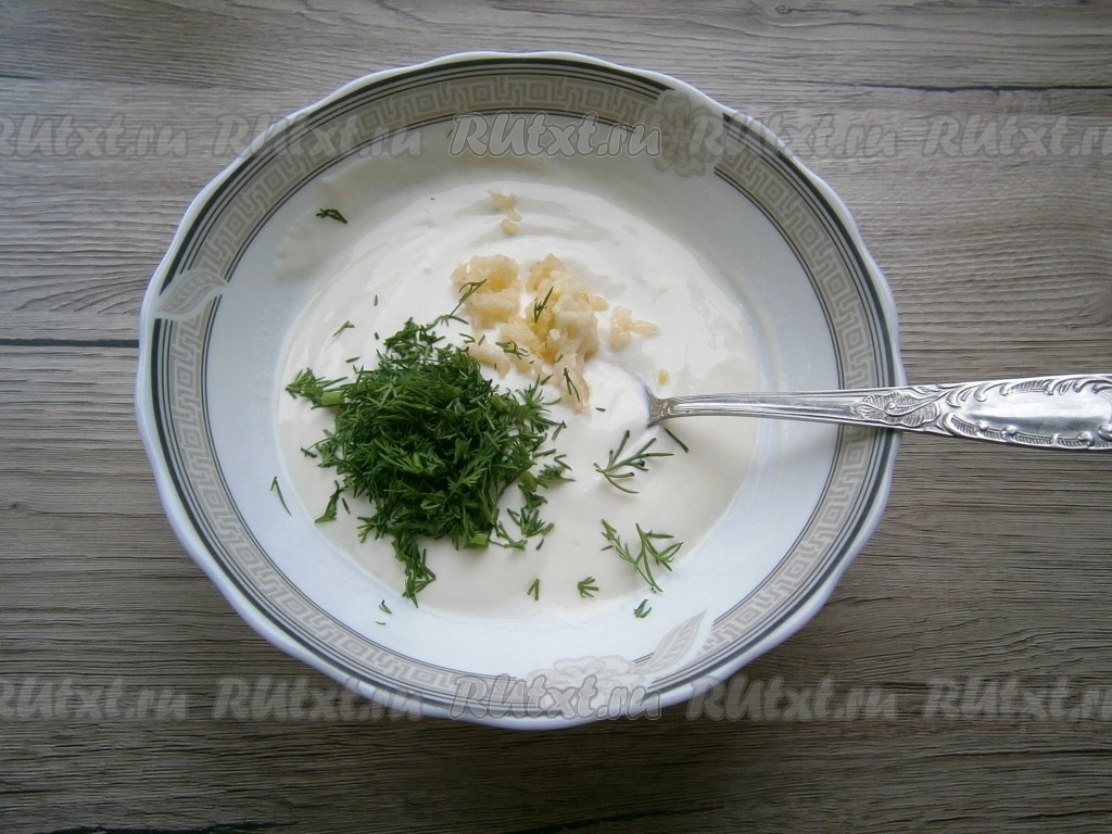 Добавить нарезанную зелень укропа и пропущенный через пресс чеснок.