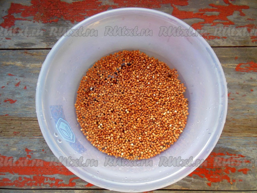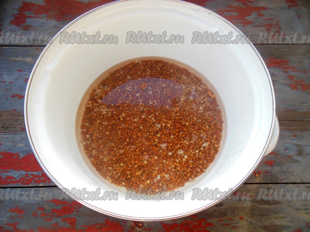 Гречневую крупу залейте холодной водой, тщательно промойте, удалите черные крупинки.
