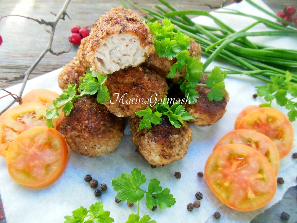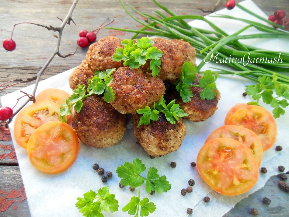 К котлетам, приготовленным из фарша кролика по этому рецепту, отлично подойдет кисло-сладкий соус из клюквы, брусники или же сметанный соус с чесноком и зеленью. На гарнир можно подать картофельное пюре, рис и конечно же салаты из свежих овощей и зелень.