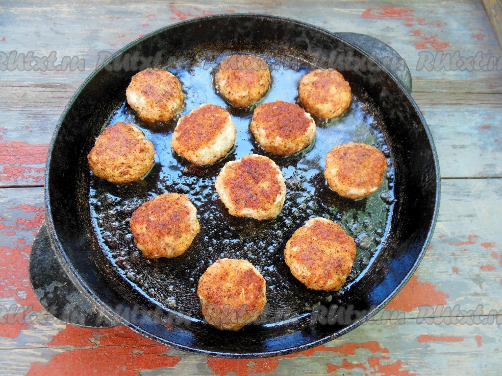 Затем переверните котлетки на другую сторону и тоже обжарьте до золотистой корочки.
