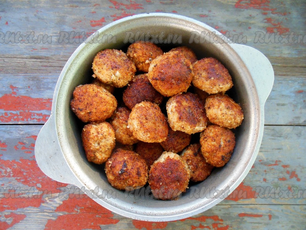 Затем котлеты переложите в чугунок (или толстостенную кастрюлю), добавьте немного воды, накройте крышкой. Доведите котлеты до готовности на плите на небольшом огне в течение 10-15 минут или в разогретой духовке при температуре 180 градусов в течение 10 минут.