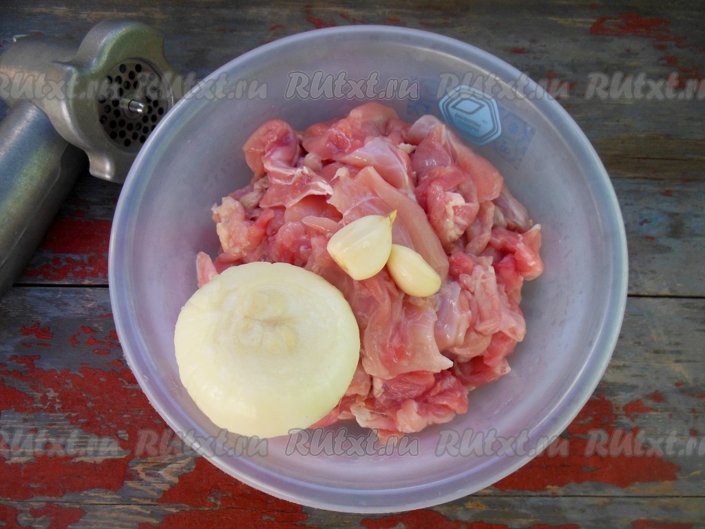 Пропустите кусочки мякоти два раза через мясорубку, так ваши котлеты станут еще нежнее. Из кроликов весом 2 килограмма у меня получилось 1,1 килограмма хорошего домашнего фарша.