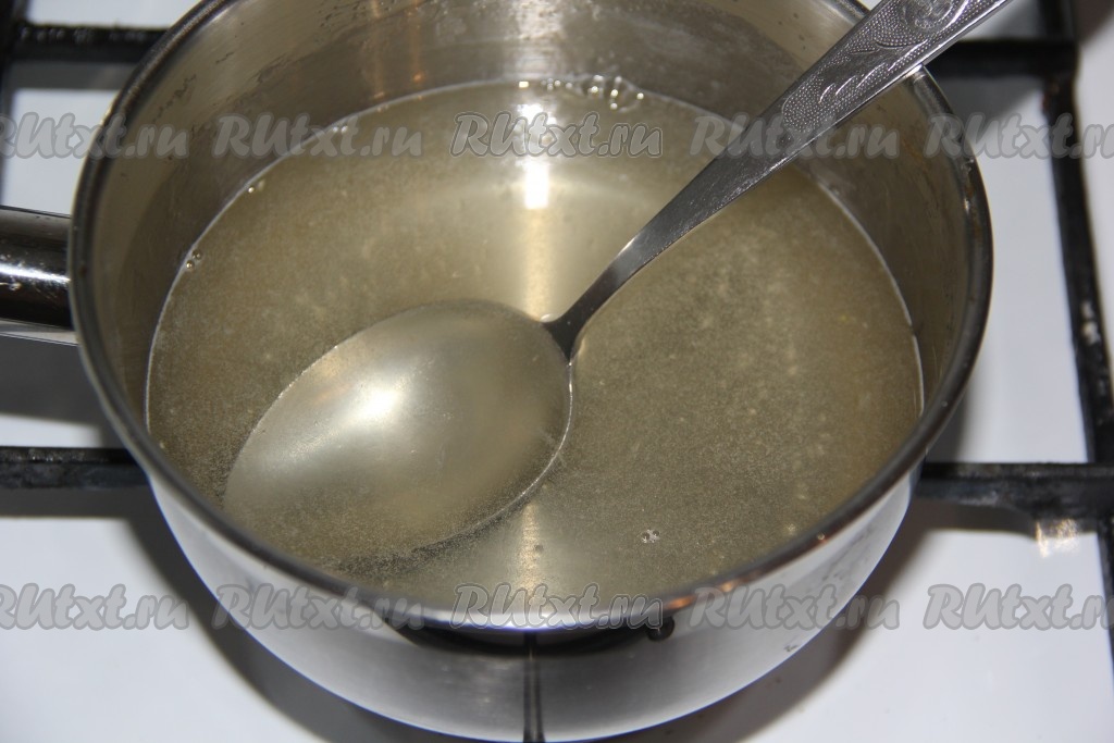 В сотейнике соединить свежевыжатый лимонный сок, воду и сахар, перемешать, поставить сотейник на огонь и довести сироп до кипения.