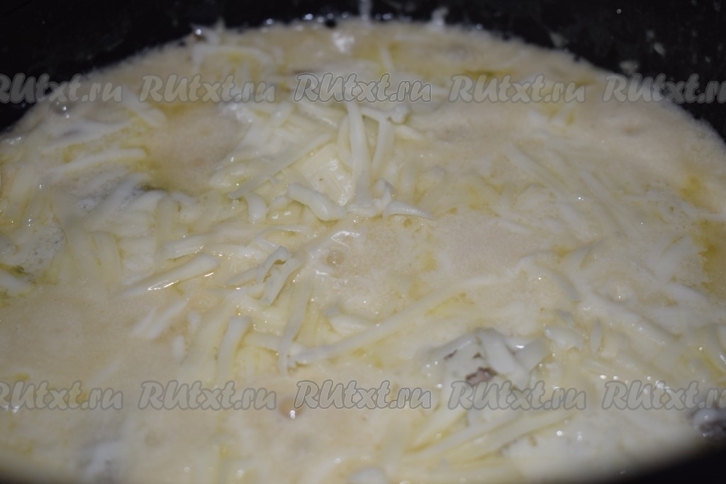 По истечении 20 минут добавляем сыр в мультиварку поверх мяса.