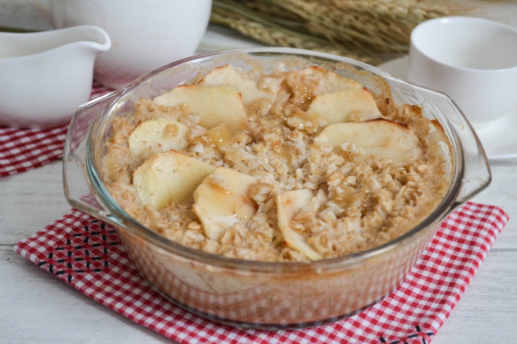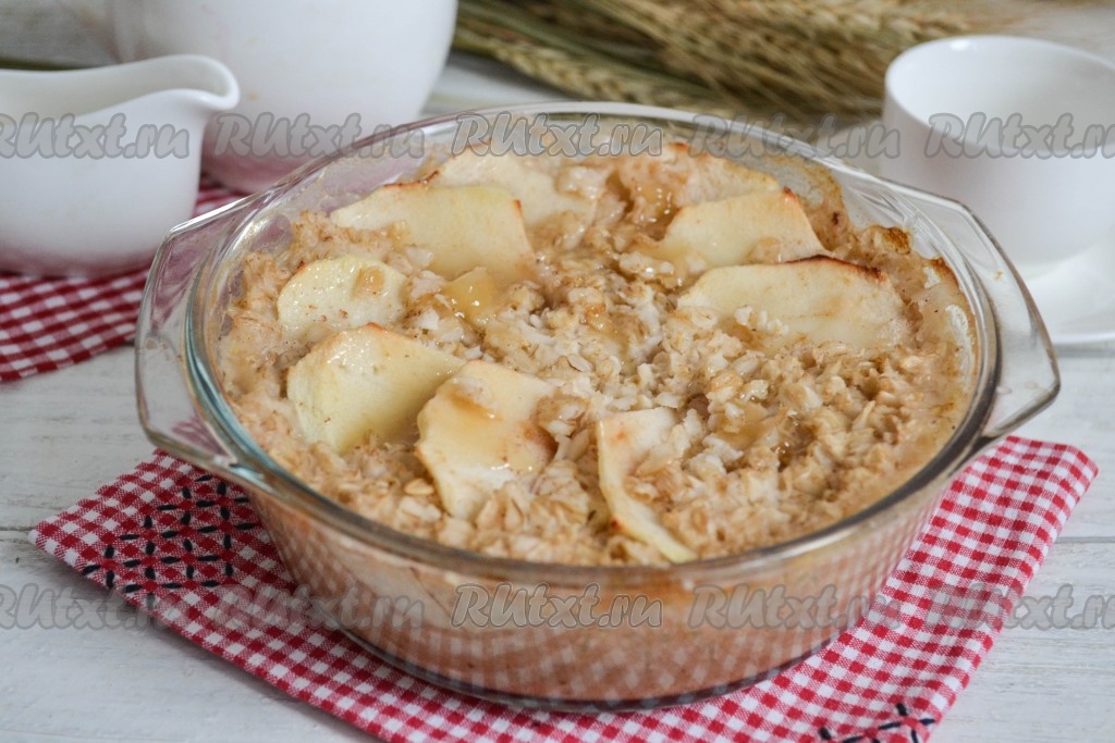 У овсяной каши много преимуществ перед другими кашами: вкусная, полезная и быстрая в приготовлении. Поэтому и нравится эта каша многим. С этим блюдом можно экспериментировать: добавить яблоки, орехи, изюм, курагу, и т.д., варить на воде, молоке или йогурте, сделать соленой или сладкой. И даже способов приготовления множество. Я предлагаю запечь овсянку в духовке. В процессе запекания овсяная каша становится очень вкусной и нежной. Соль, сахар или специи добавляйте по вкусу. Воду можно заменить молоком.