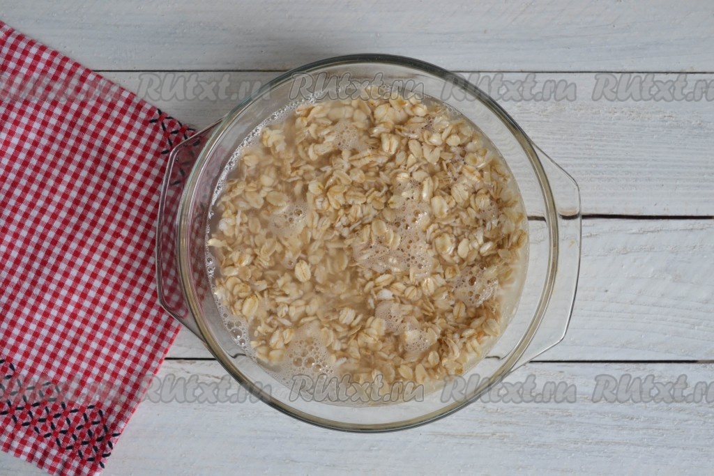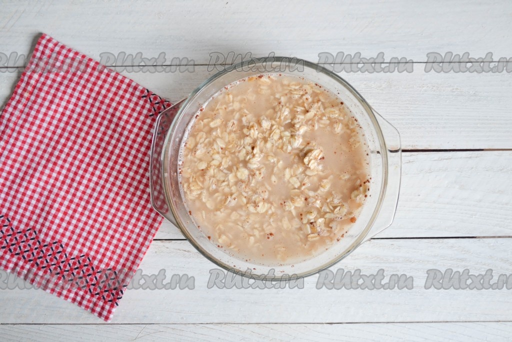 Овсяные хлопья высыпать в форму для запекания и залить холодной водой.