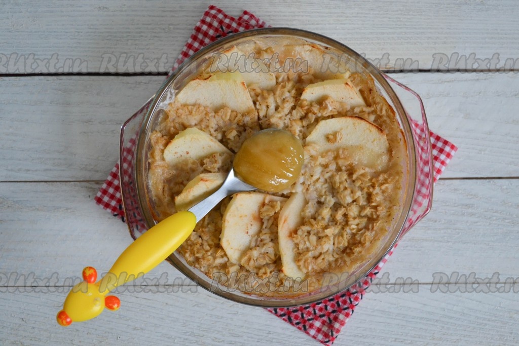 Запекать овсянку с яблоками в разогретой духовке в течение 20 минут при температуре 170 градусов.