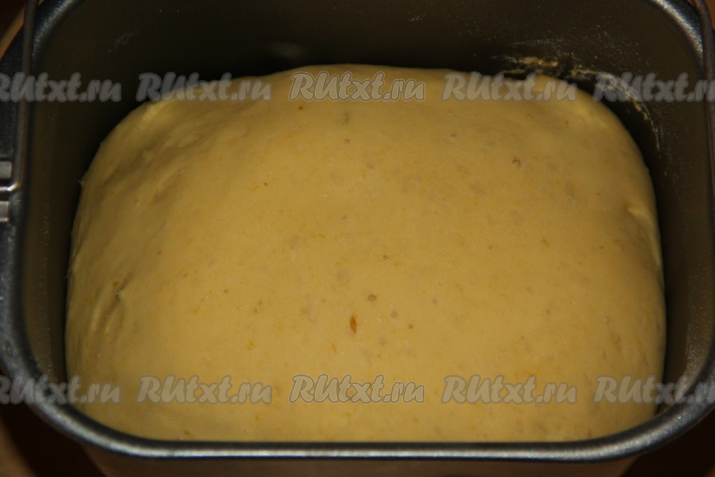 Если замешивать тесто вручную, тогда нужно соединить тёплое молоко, растопленное не горячее сливочное масло, желтки, сахар, тыквенное пюре и дрожжи, слегка перемешать, оставить на 20 минут. Затем всыпать муку и соль. Замесить мягкое и нежное тесто. Оставить тесто в тепле на 1,5 часа. Тесто хорошо поднимется.