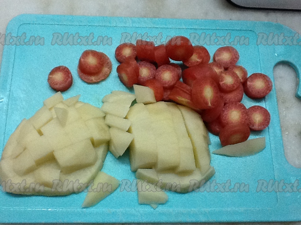 Пока обжаривается лук, очистим и нарежем картошку и морковку.