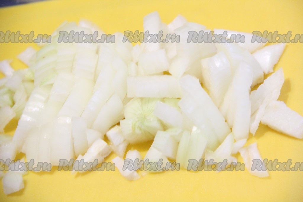 Очищенный репчатый лук мелко нарезать.