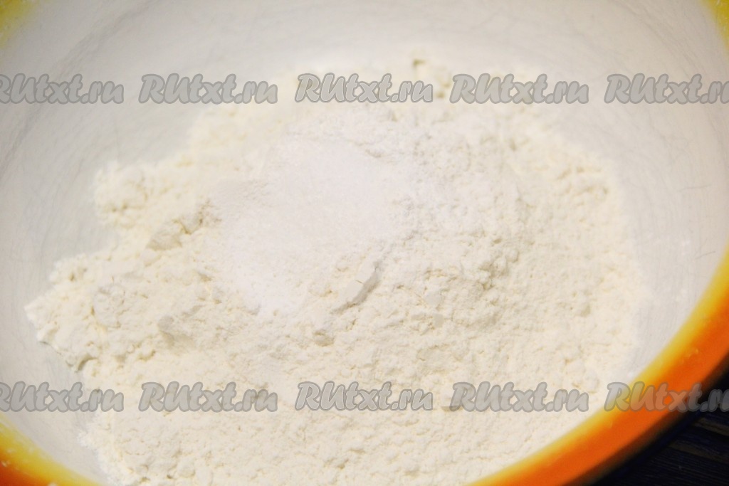 Приступим к приготовлению теста. В глубокую миску просеять муку, добавить соль и разрыхлитель.