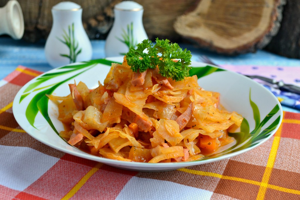 Хочу предложить вам отличное, вполне самостоятельное блюдо - капусту, тушеную с колбасой в мультиварке. Блюдо получается и легким, и в тоже время сытным, очень вкусным, насыщенным. Подать такую капусту можно на обед или ужин.