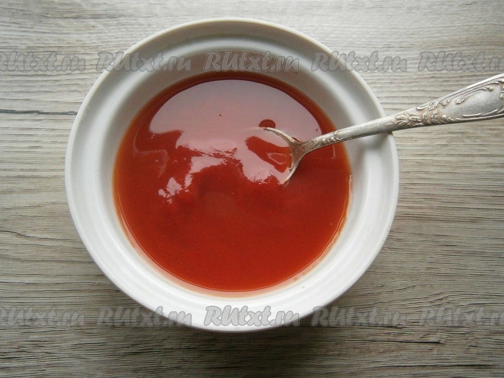 Томатную пасту развести в небольшом количестве воды.