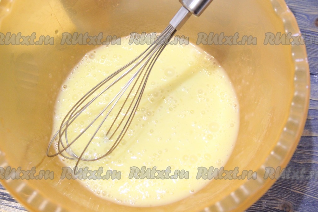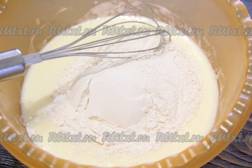 Всыпать муку и перемешать получившееся тесто венчиком.