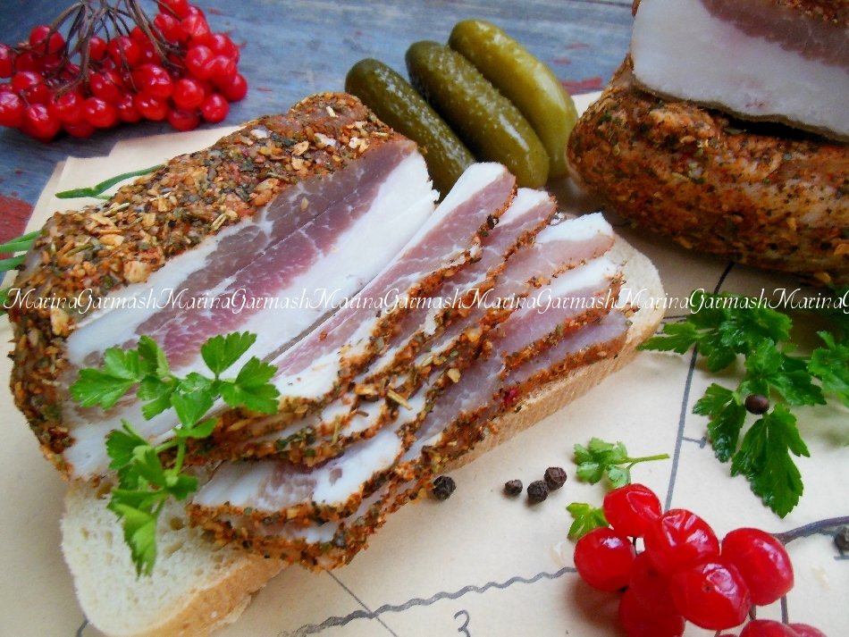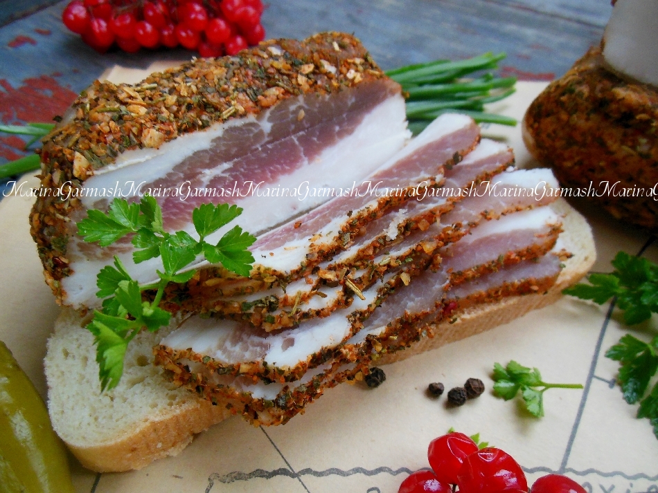 Хорошо промокните сало бумажным полотенцем.