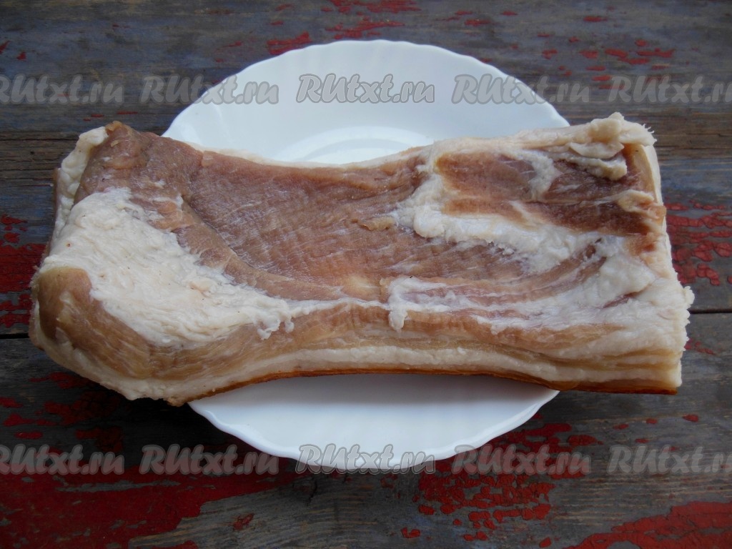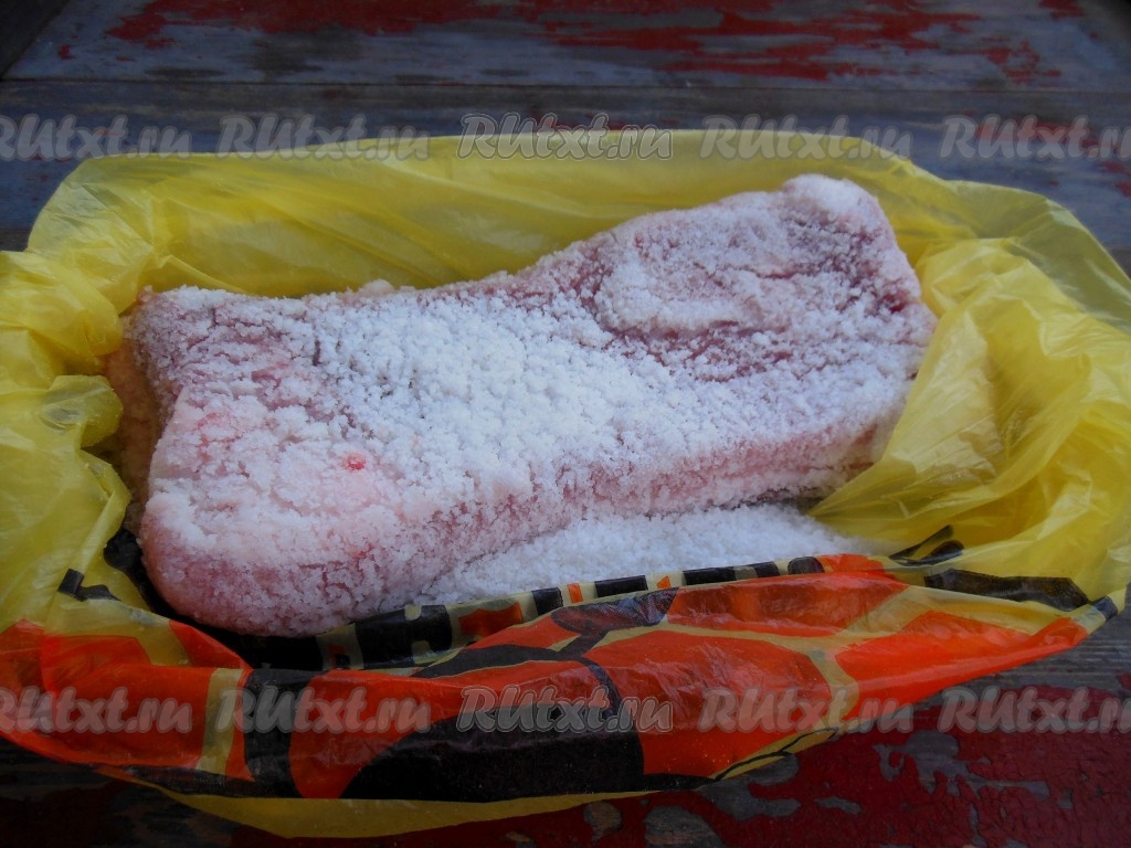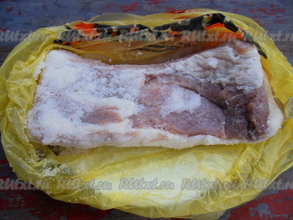 Затем достаньте сало из пакета, ополосните от соли. В процессе засолки сало впитало в себя ровно столько соли, сколько ему необходимо.