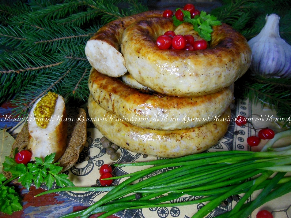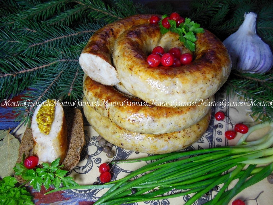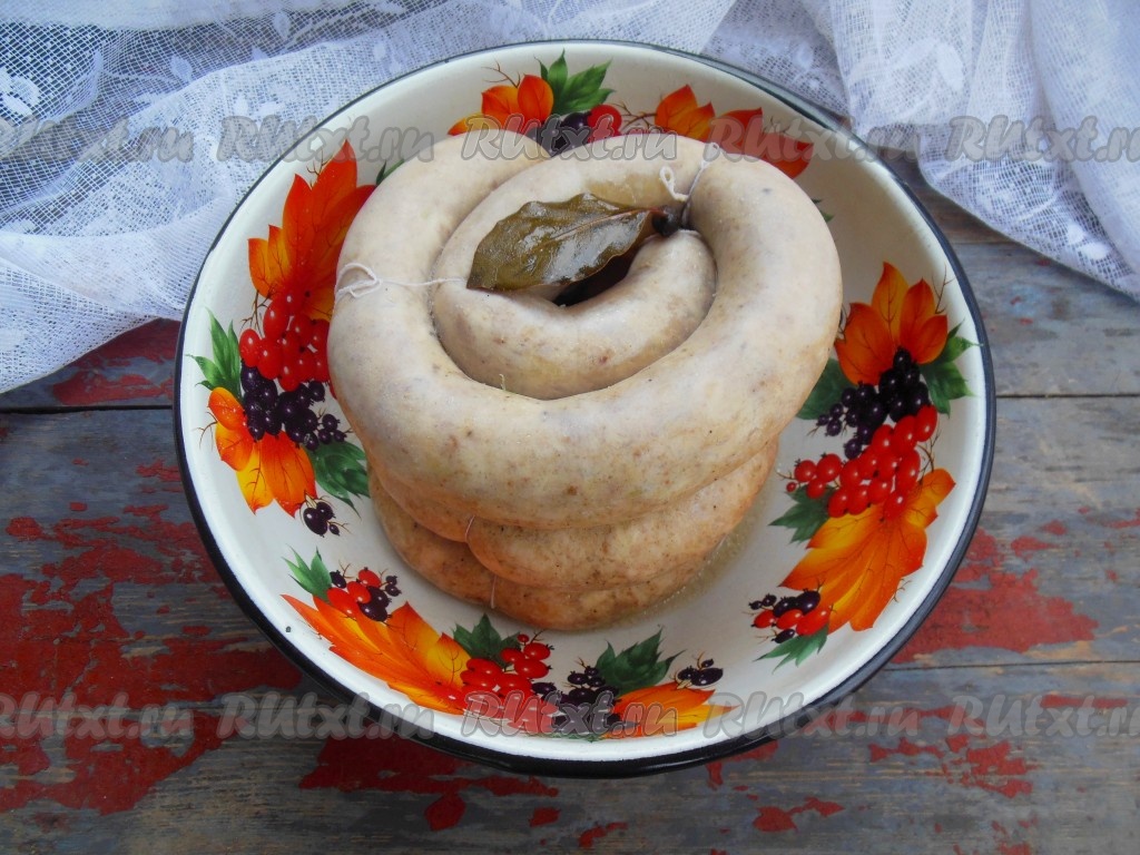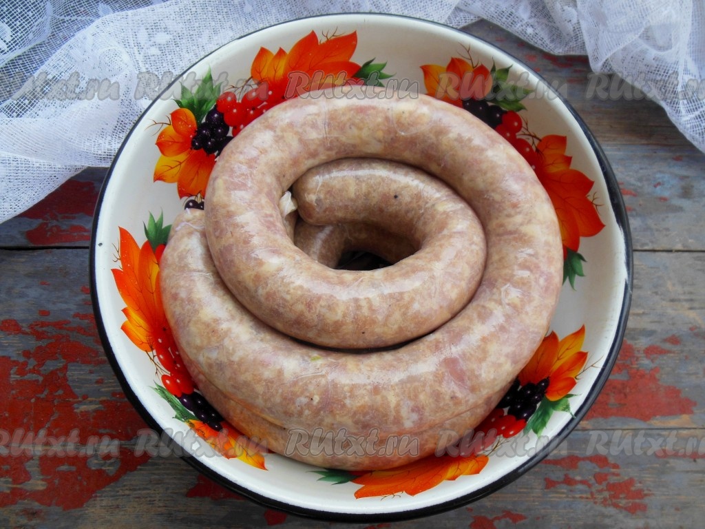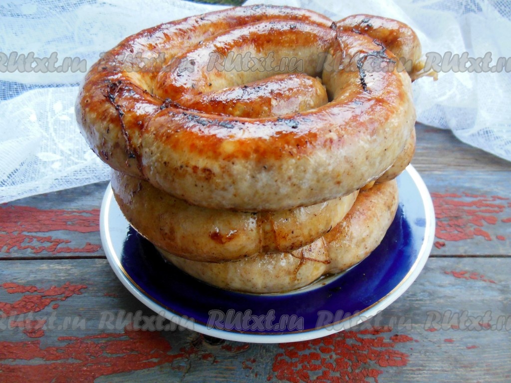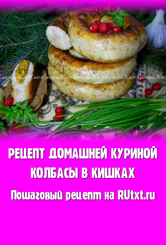 Домашняя куриная колбаса, приготовленная в кишках по этому рецепту, получается очень вкусной, в меру соленой и сочной.
