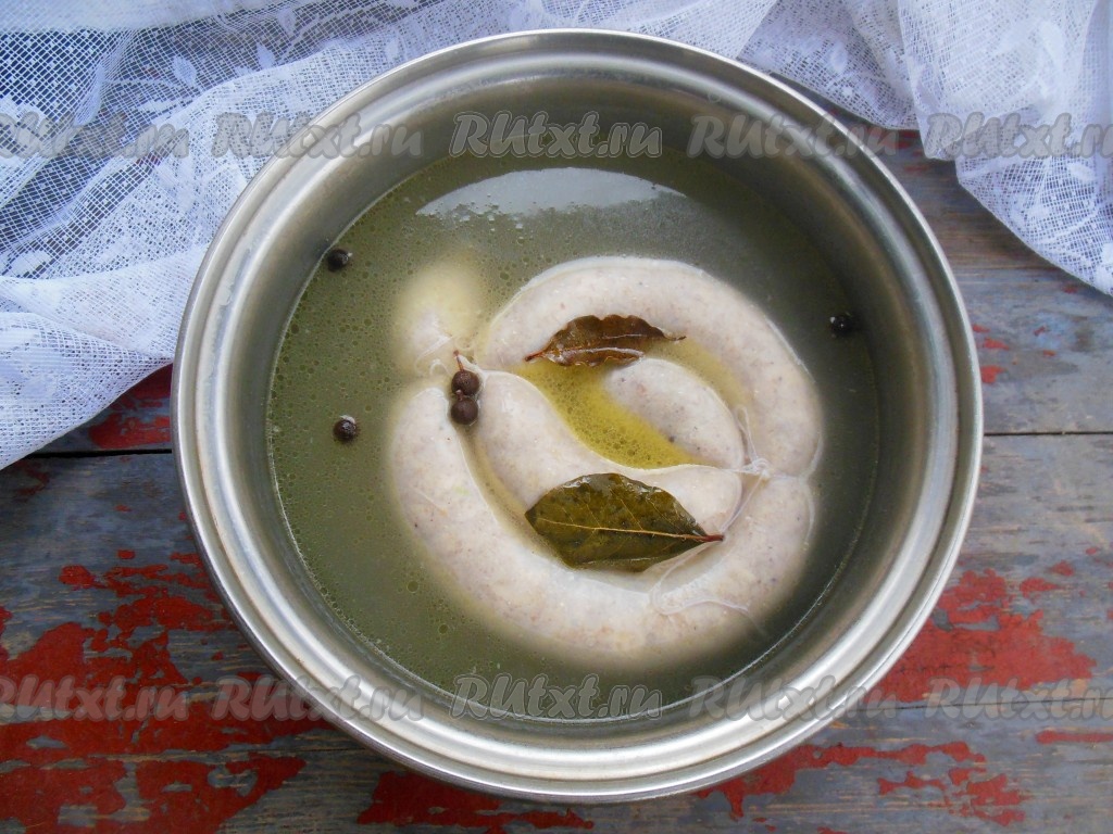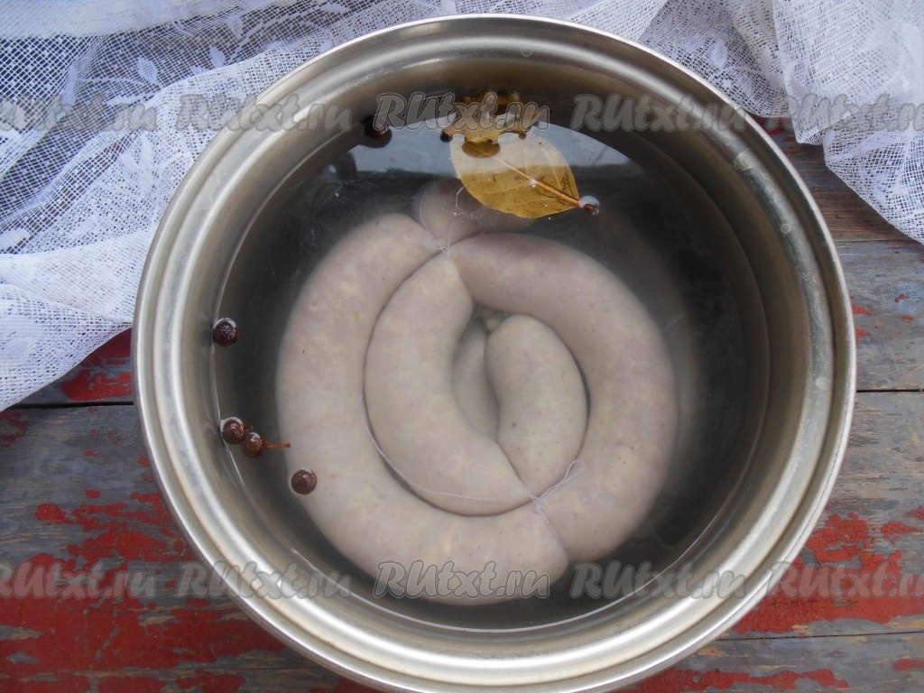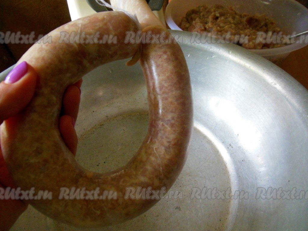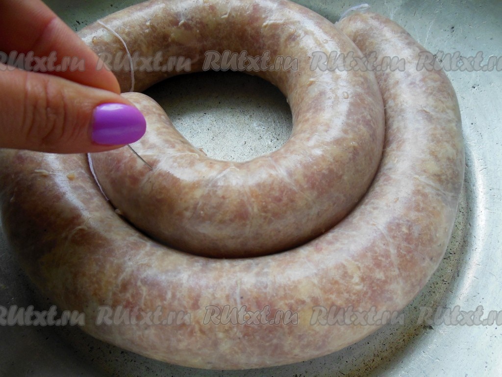 Чтобы колбасу было удобно отваривать, перевяжите ее в нескольких местах ниткой.