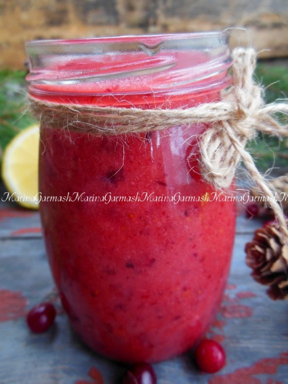 Измельчите лимон с клюквой в течение 2 минут.