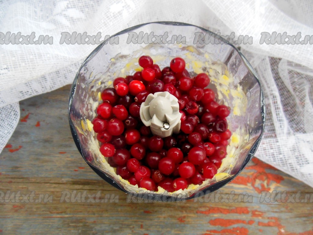 Добавьте ягоды клюквы к измельченному лимону.