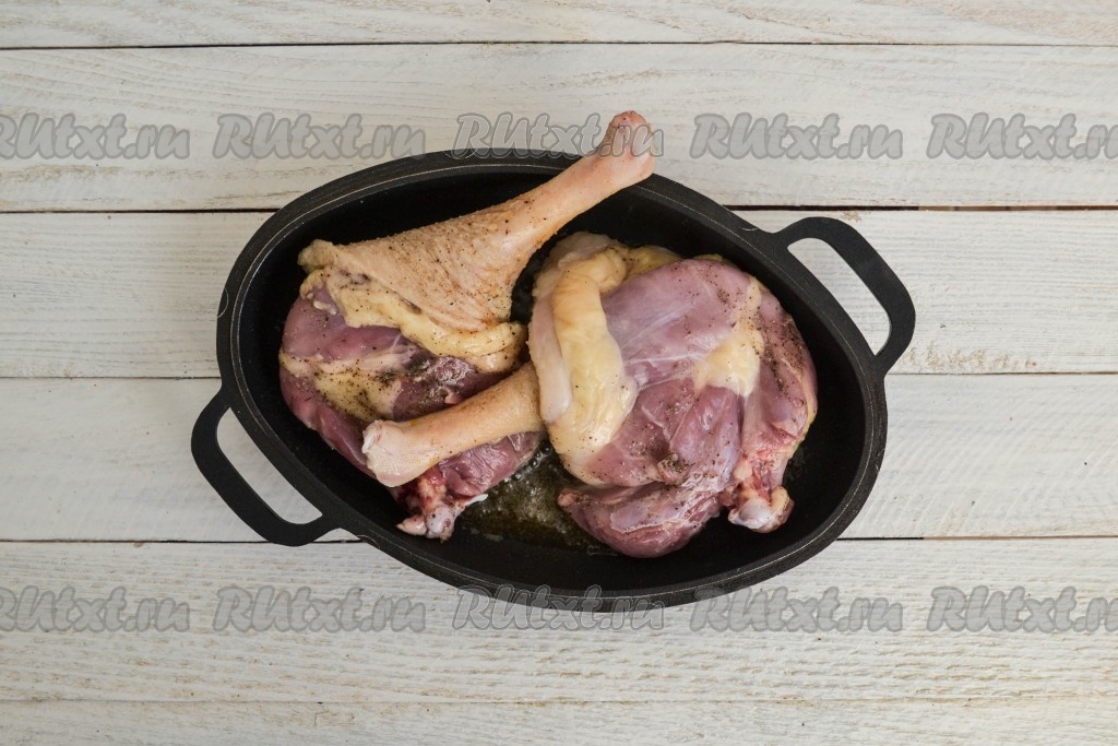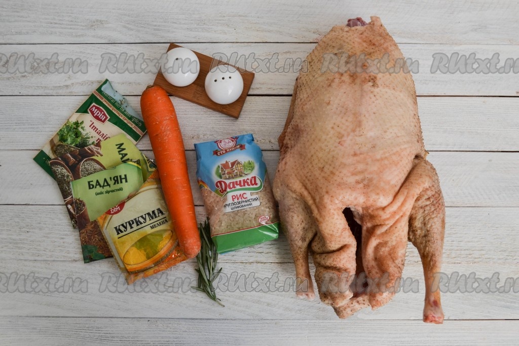 Подготовить необходимые ингредиенты для приготовления гуся кусочками.