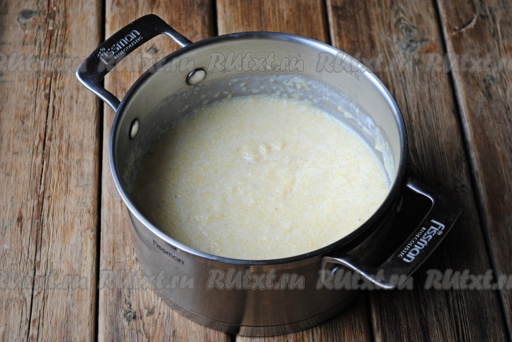 Довести до кипения, уменьшить огонь и варить молочную кукурузную кашу, не накрывая крышкой, 10-15 минут, постоянно помешивая. Затем снять с огня, накрыть крышкой и дать настояться в течение 15-20 минут.
