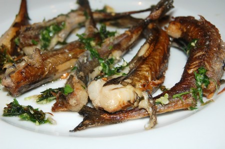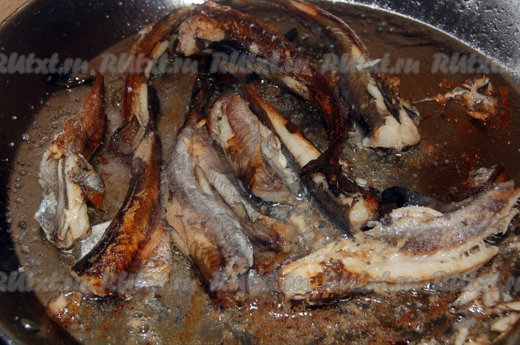 Через 2 минуты перевернуть рыбку. Она маленькая и очень нежная, жарится моментально.