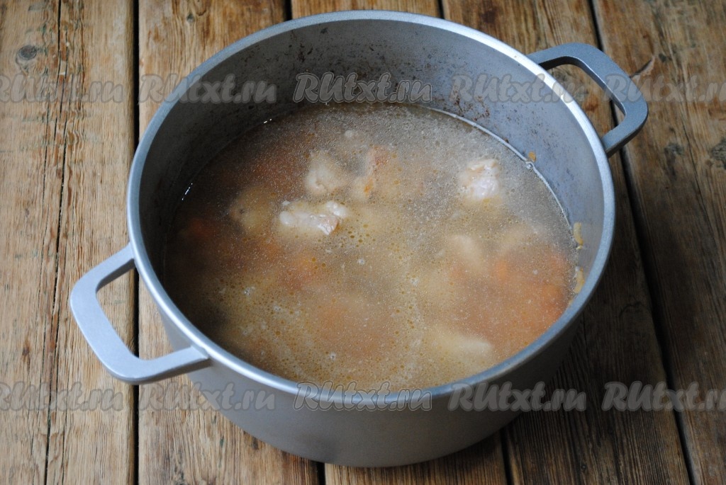 Когда овощи станут мягкими, добавить воду, после закипания уменьшить огонь и варить до готовности мяса (я варила 35 минут).