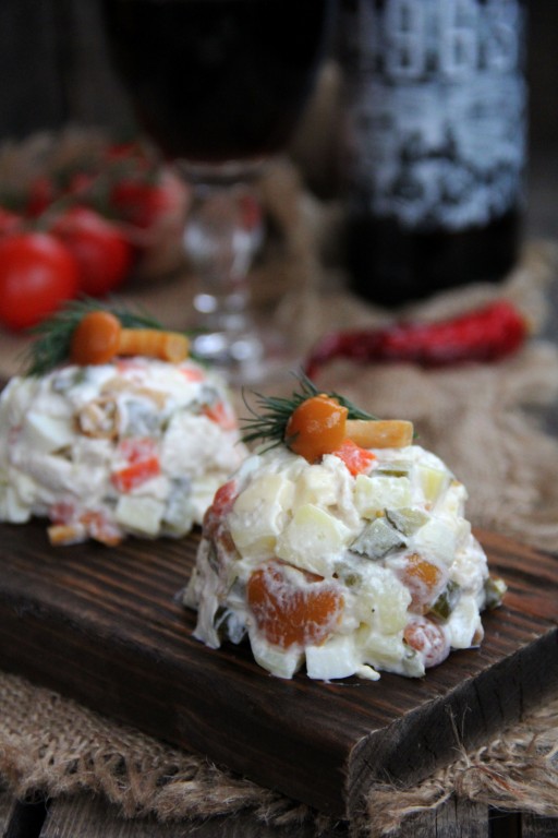 Рецепт салата "Охотничий" с куриной грудкой и маринованными опятами я взяла на просторах интернета. Салатик получился очень вкусным и сытным. Его можно приготовить на праздничный стол или повседневный ужин. Попробуйте!