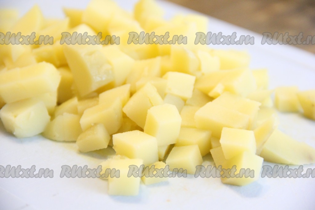 Средними кубиками нарезать картофель.