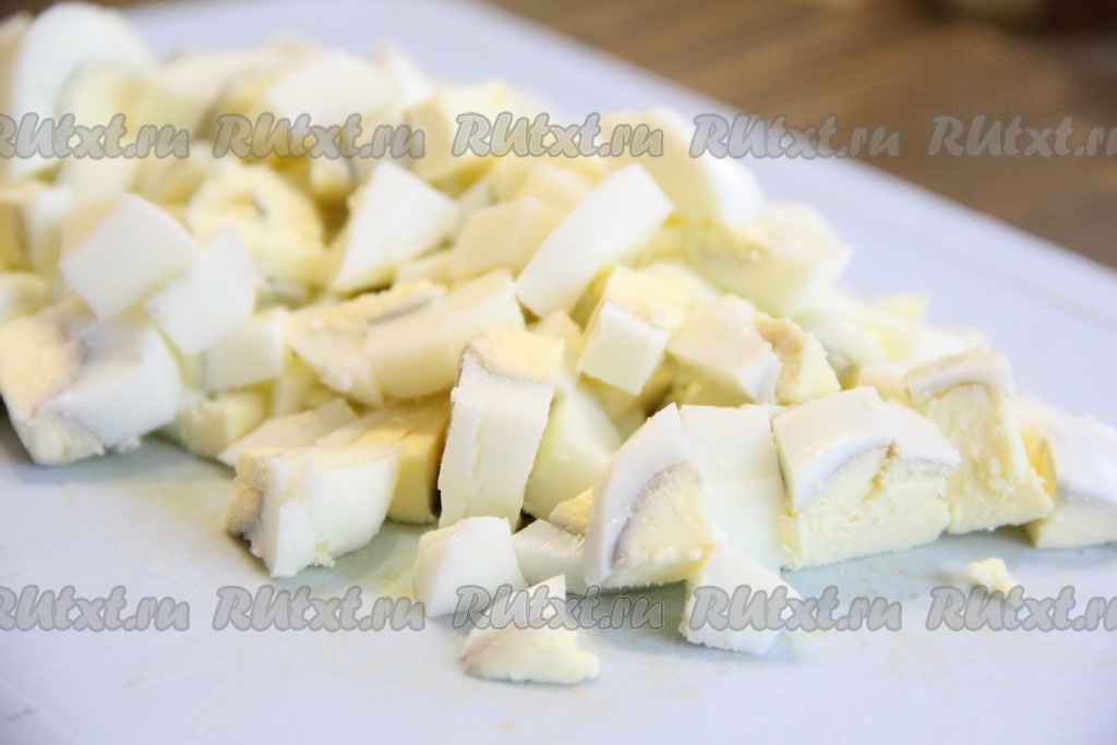 Яйца нарезать не мелко.