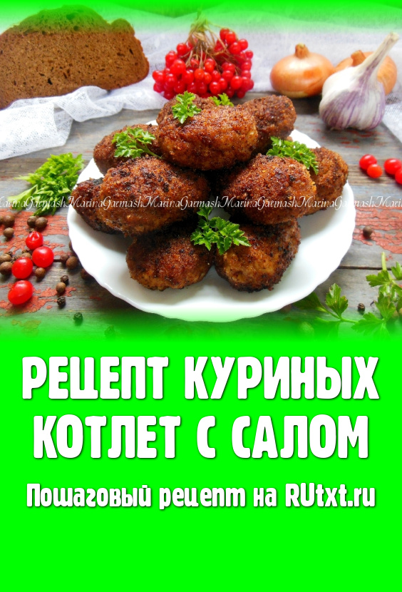 Куриные котлеты, приготовленные с добавлением сала и хлеба, получаются очень сочными, вкусными и ароматными. На гарнир подойдут картофельное пюре, рис, макароны, гречневая каша.